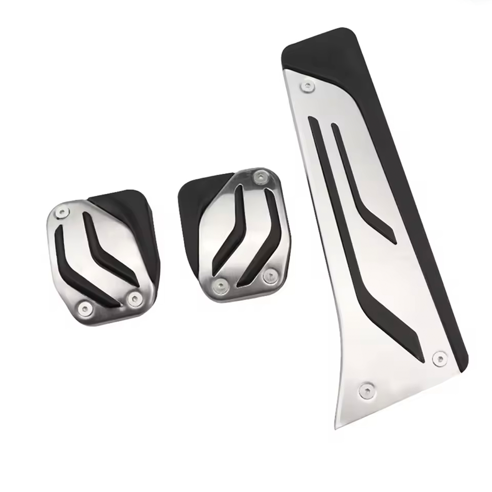 Tyylikkäät alumiiniset poljinpinnat manuaalivaihteiselle BMW:lle, M-performance -tyyliin. Laadukas tarvikeosa.